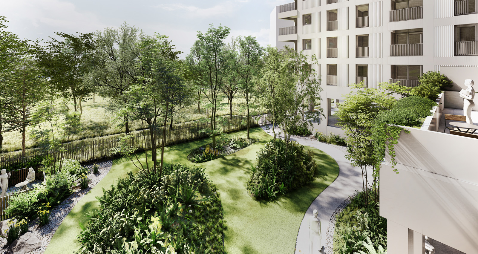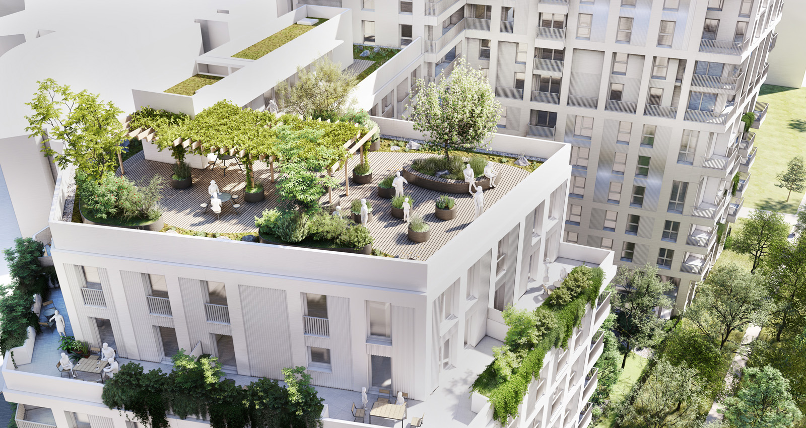 Le lot A1 illustre ainsi une approche contemporaine de l’urbanisme, où qualité de vie, durabilité et intégration écologique se conjuguent. L’ensemble n’est pas seulement un projet paysager, mais un cadre de vie pensé pour favoriser les interactions, valoriser la nature et inscrire chaque geste humain dans un écosystème vivant et cohérent. L’urbain et le végétal s’y rencontrent dans une continuité réfléchie, créant un équilibre sensible entre fonctionnalité, confort et poésie de l’espace.