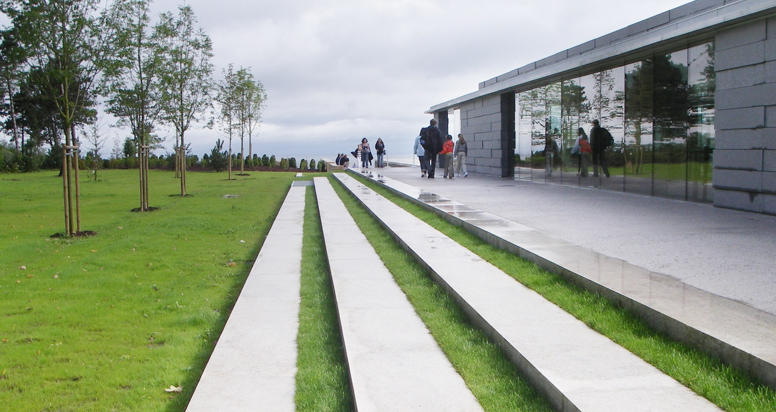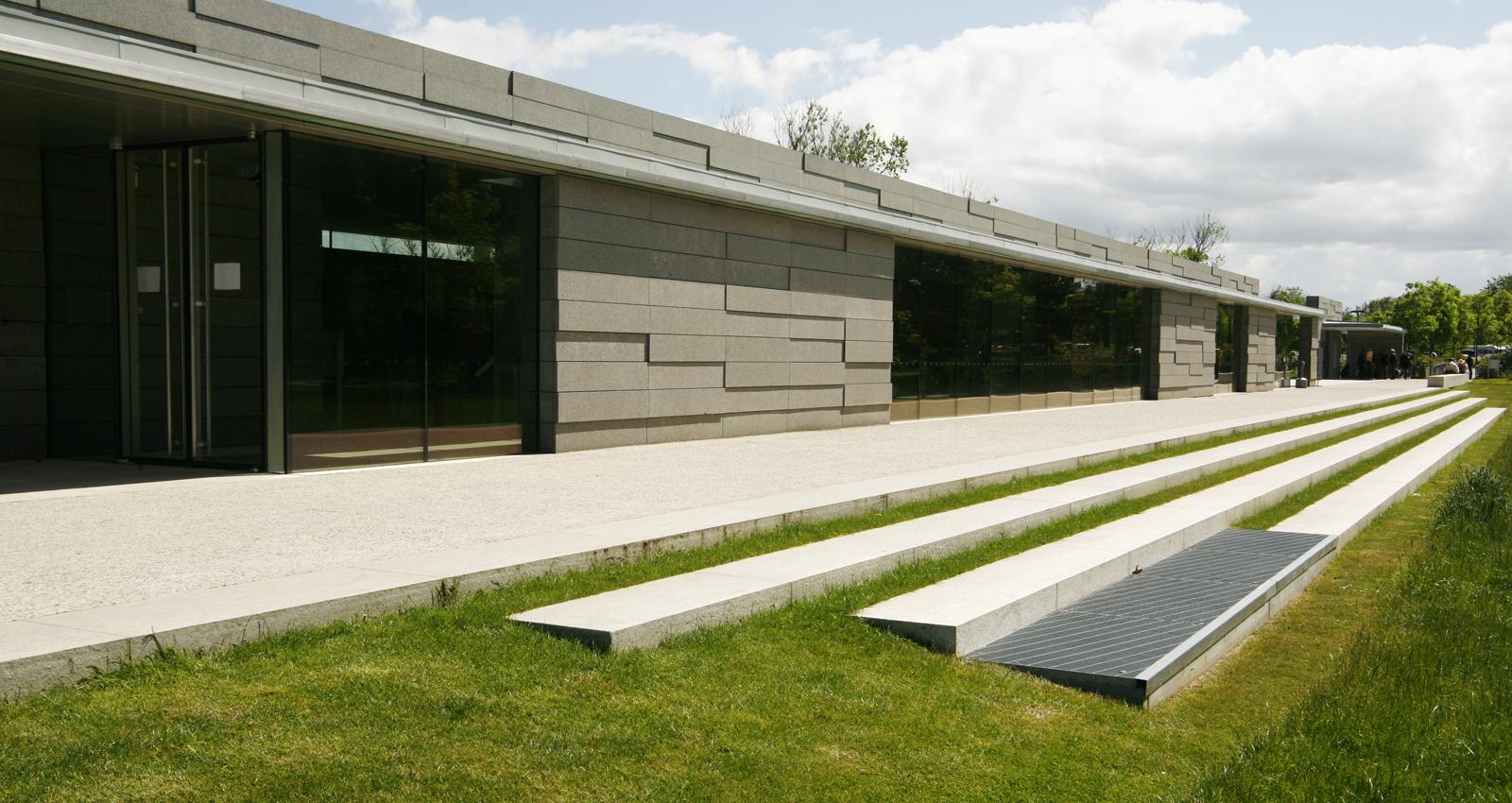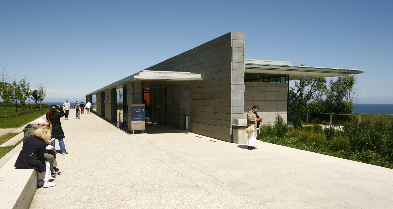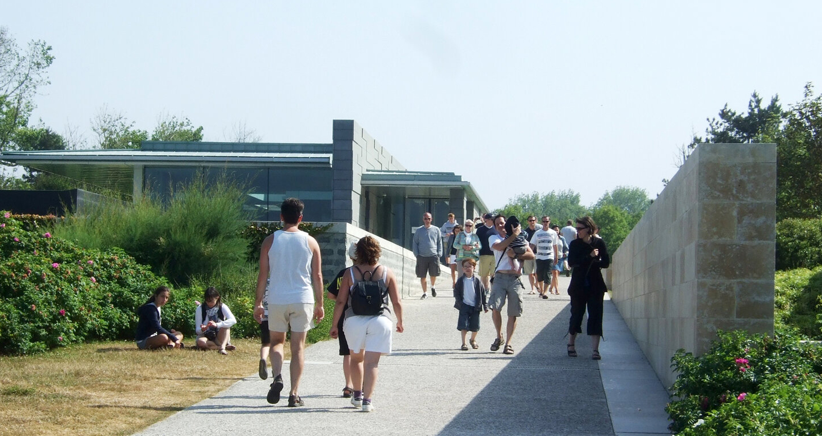 Le nouveau Centre d’Interprétation est situé sur la frange est du Cimetière américain de Colleville-sur-Mer. Le projet paysager souligne l’axe sur lequel a été implanté le bâtiment ; faisant face à la plage d’Omaha Beach, le visiteur peut apprécier l’ampleur de l’assaut initial du débarquement. La palette végétale du jardin au nord s’inspire du paysage agricole de bocages et permet de créer une transition entre les coteaux normands et le paysage solennel du cimetière.
