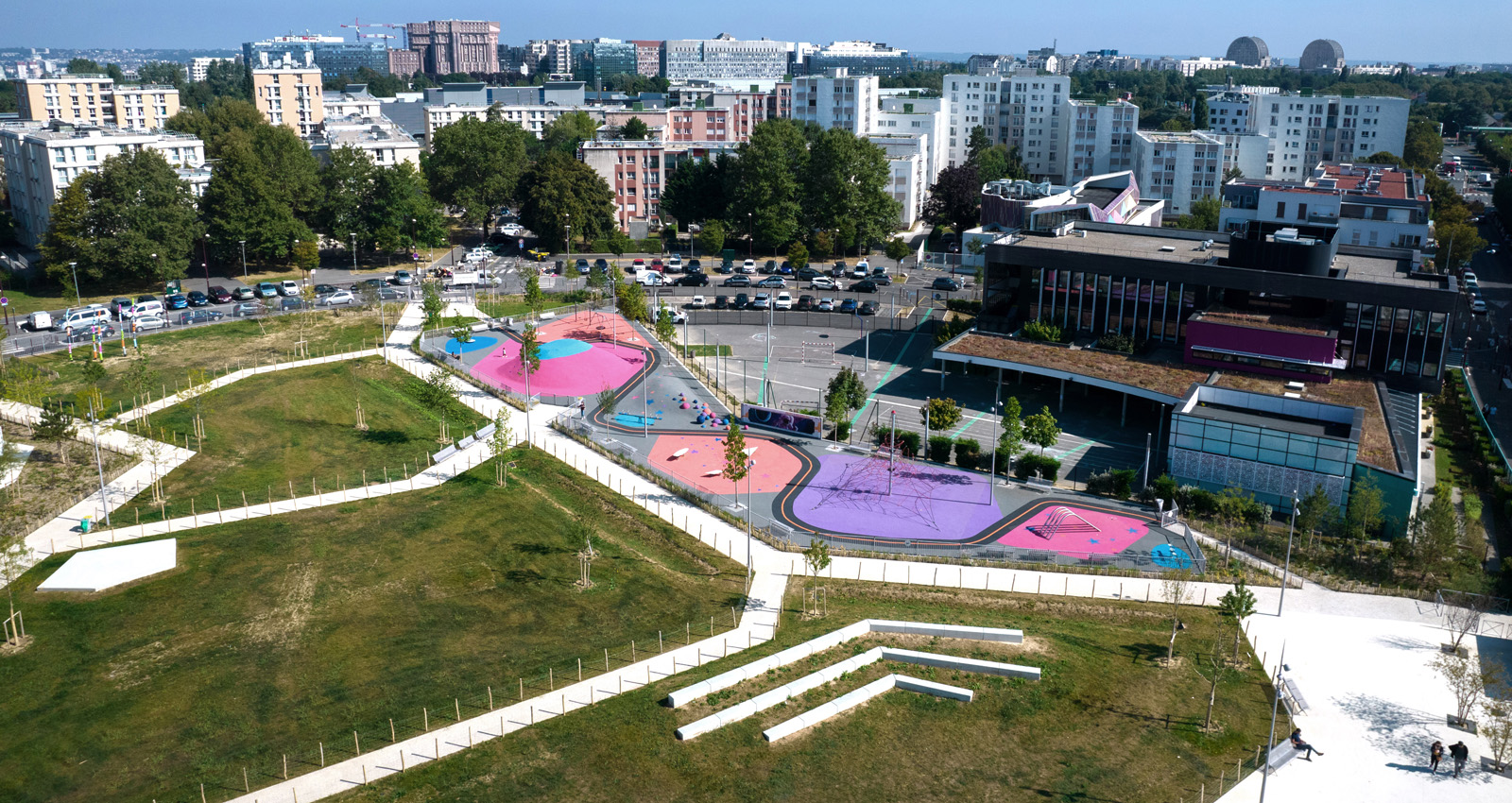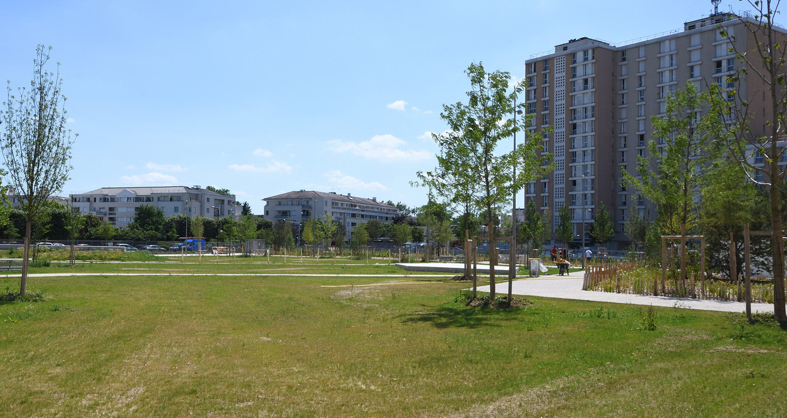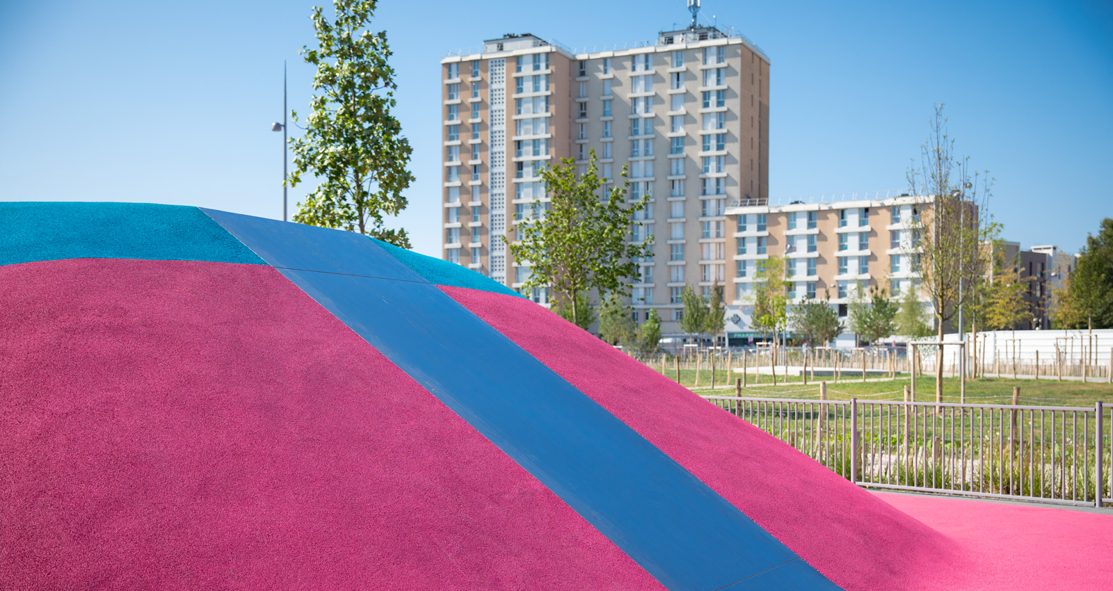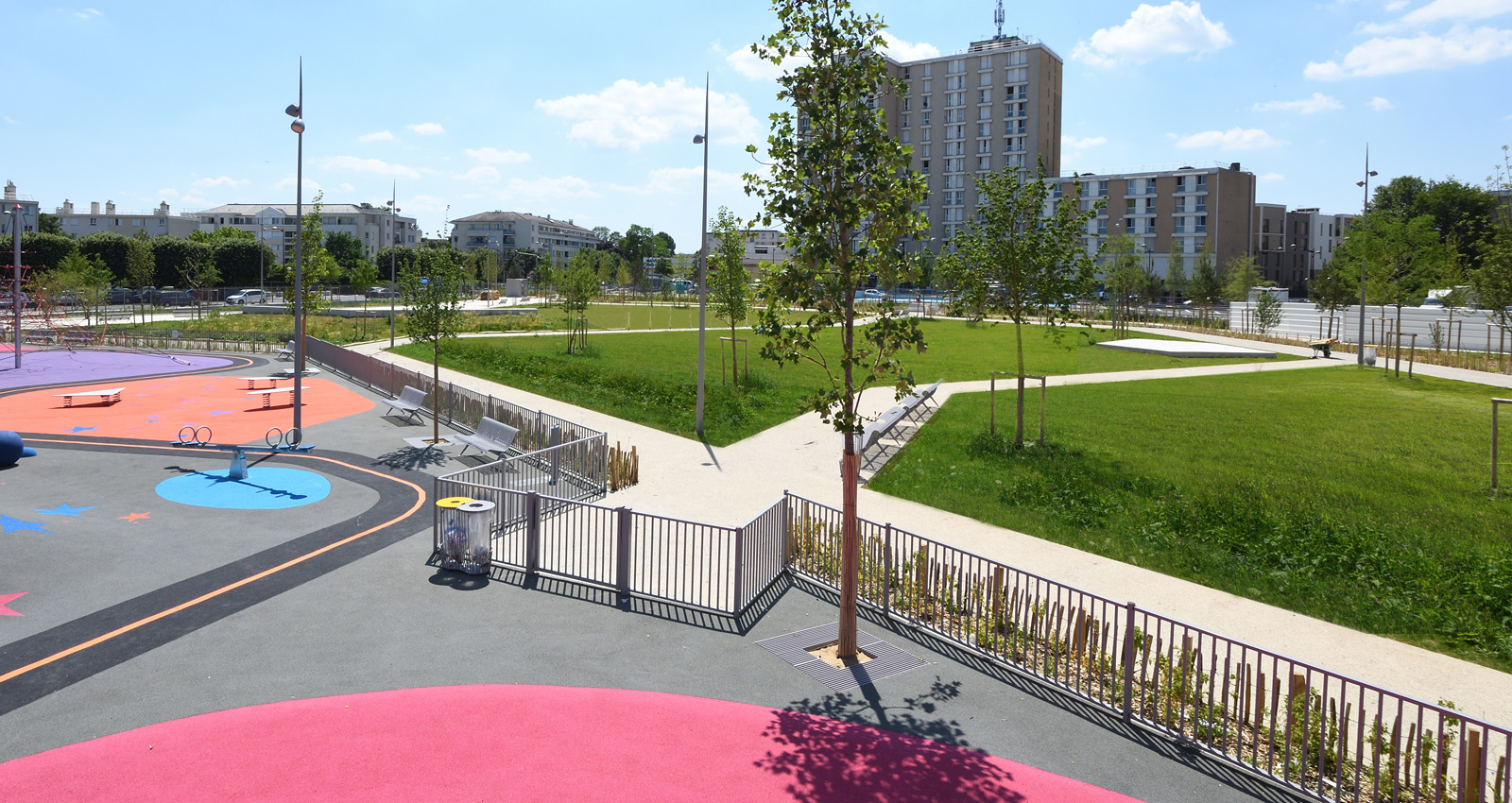 L’aménagement du Parc Friedberg se situe dans le quartier des Hautes-Noues, proche du centre-ville. Ce parc urbain consiste en véritable poumon vert offrant un lieu de jeux et de détente aux habitants du quartier. Au centre se trouve, une pelouse généreuse et ouverte pour les jeux de ballon, les activités libres et les pique-niques. Au sud, se développe une esplanade qui dialogue visuellement avec le boulevard et le quartier, pouvant accueillir du public et des représentations sociaux-culturelles de la ville. A l'est se déploie, un espace de jeux sculptural, ludiques et colorés, pour les enfants de 3 à 15 ans. Au cœur de l’aire de jeux l’artiste Crey132 a réalisé spécialement une fresque murale inédite. A l'ouest est planté, un écran végétal masquant les bâtiments de logements et leurs aires de stationnement, et écrin de verdure abritant un city stade ainsi qu’un parcours sportif.