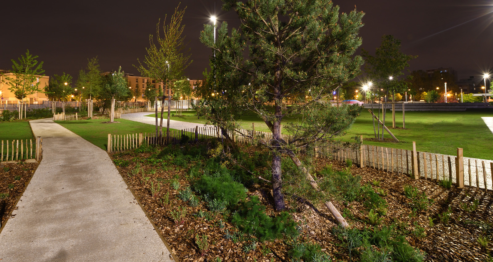 maître d'oeuvre : D PAYSAGE (Concepteur paysagiste mandataire), INGETEC (VRD), AARTILL (Eclairagiste)
